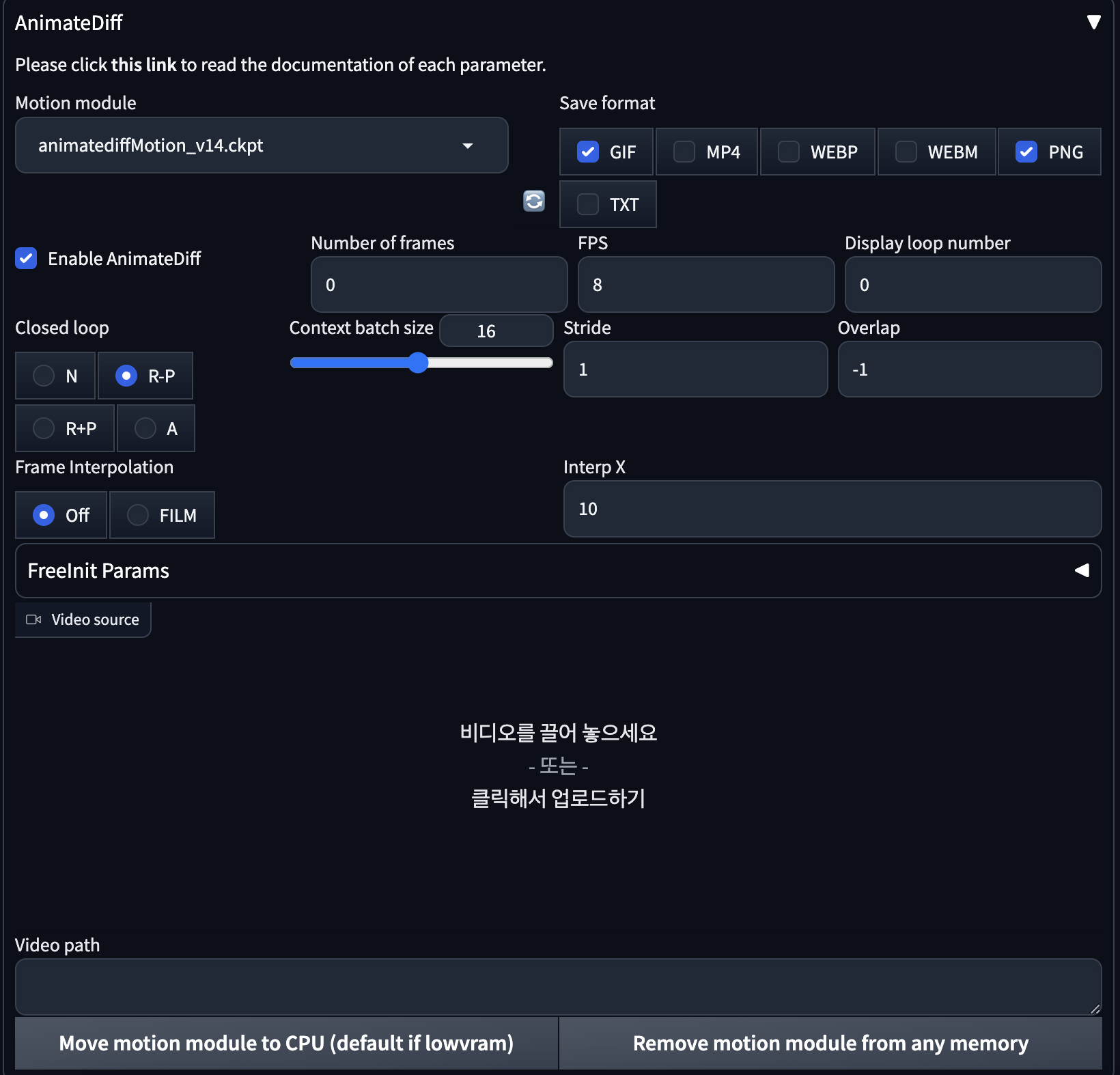 - AnimateDiff는 단순히 이미지를 연결하는 것에 그치지 않고, 각 프레임 간의 자연스러운 움직임을 생성하는 데 특화되어 있습니다.